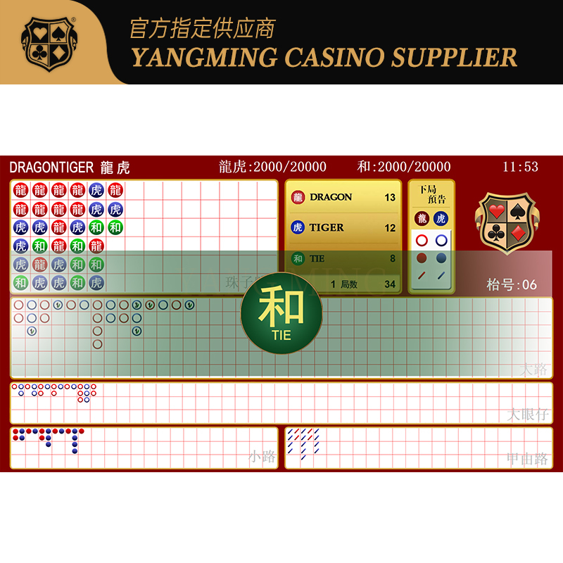 يحتوي التصميم البصري المعاصر على انسجام كروماتي ذي ذوق وعناصر رسومية أنيقة، مما يجعله الحل المفضل لتركيبات طاولات الباكارات المباشرة المتميزة في جميع أنحاء العالم.