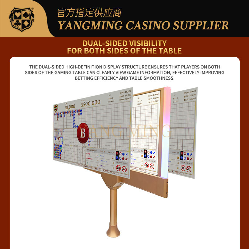 عرض الكازينويحتوي على إضاءة LED مشرقة وتصميم رقيق حديث ، مما يضمن رؤية واضحة من جانبي الشاشةالجدول. تم بناؤه لتشغيل الكازينو بشكل مستمر ، ويقدم أداءً مستقراً ، ورسومات حية ، وزوايا عرض واسعة. مثالية للباكارات وغيرها من ألعاب الطاولة ، تدعم المحتوى القابل للتخصيص ،عرض متعدد اللغات، وعلامة تجارية شعارية لتعزيز كفاءة إدارة اللعبة وعرض الكازينو بشكل عام.